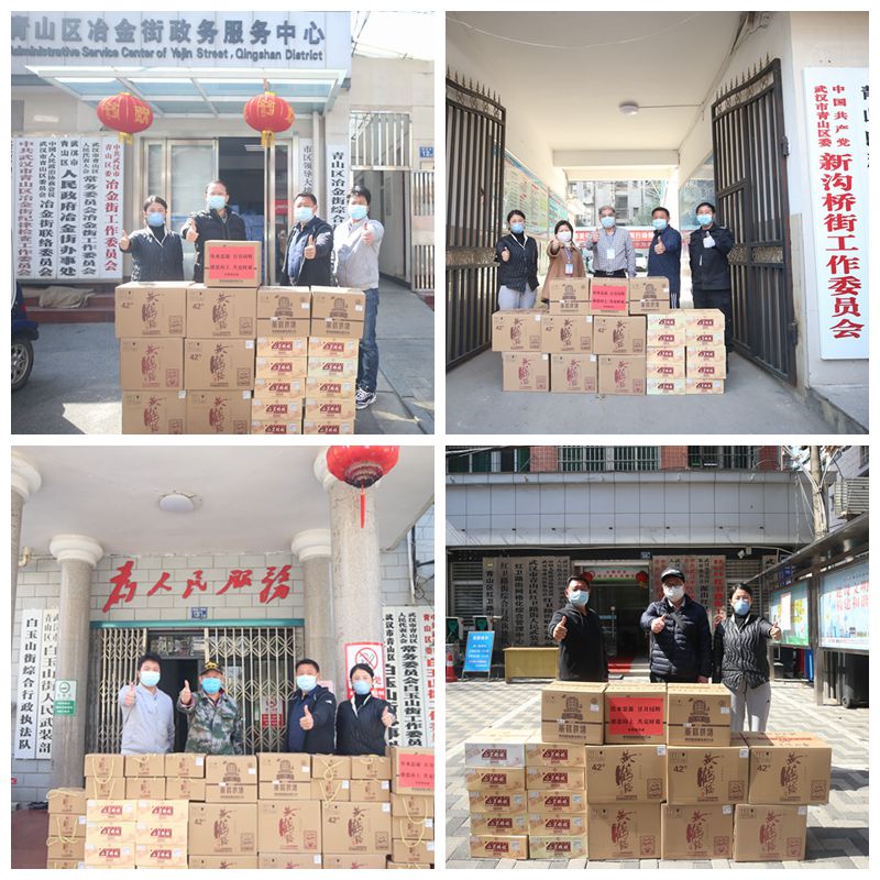 3月17日,黃鶴樓酒業(yè)志愿者服務(wù)隊(duì)前往青山區(qū)白玉山街、新溝橋街、冶金街及紅衛(wèi)街辦事處開展慰問,共送去了1800個(gè)口罩和近15萬元的防疫物資。公司行政服務(wù)中心總監(jiān)助理陳朝陽參與慰問。