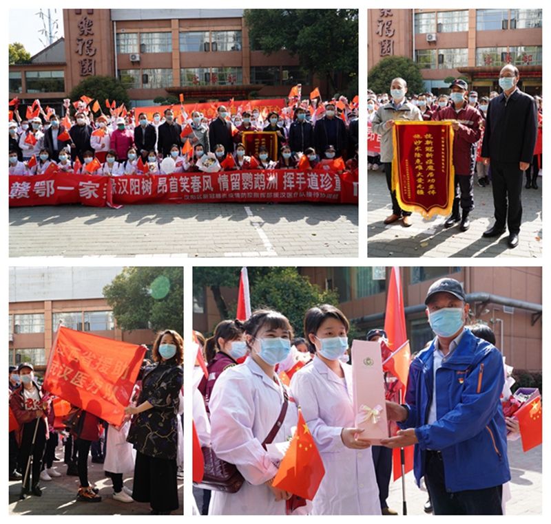 來時冰霜雨雪,走時春暖花開。歡送儀式上,徐麗代表漢陽區新冠肺炎疫情防控指揮部對江西省醫療隊的千里馳援送上了衷心的感謝,感謝醫療隊在抗擊疫情戰斗的關鍵時刻,毅然決然地奔赴湖北、馳援武漢,武漢將永遠銘記醫療隊的付出與犧牲。