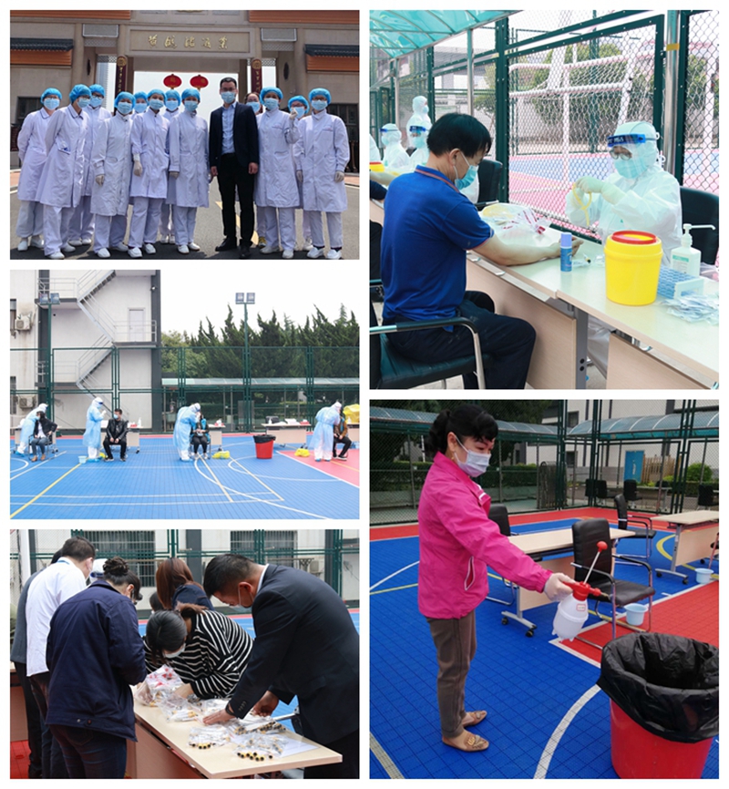 一早,公司工作人員就布置好檢測的場地,設(shè)置專門的排隊(duì)領(lǐng)取檢測管、咽拭子提取、抽血場地,引導(dǎo)員工們保持安全距離,協(xié)助醫(yī)務(wù)人員的檢測工作,并在檢測完之后對場地進(jìn)行全面消殺,保證廠區(qū)內(nèi)的衛(wèi)生安全。