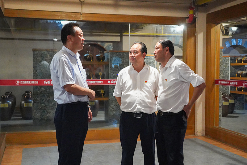 8月4日,荊門市城市建設投資控股集團有限公司黨委書記、董事長杜佐鵬,黨委副書記、總經理兼城建集團黨委書記、董事長豐金亮,荊門市城市建設投資控股集團有限公司黨委副書記、副總經理張杰一行到黃鶴樓酒業參觀交流,中信銀行南湖支行行長吳菱,副行長葉波陪同參觀,黃鶴樓酒業黨委書記、董事長許鵬,黨委副書記、副總經理麻玉俠接待來訪。