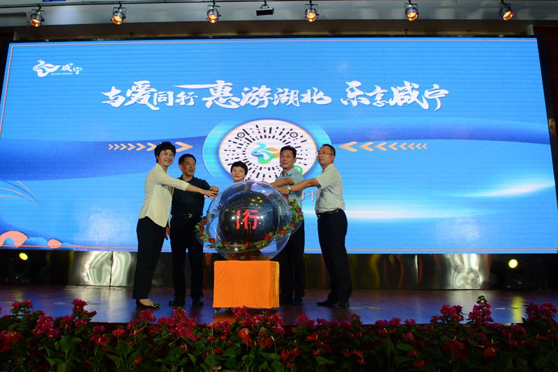 隨后,閆英姿宣布“與愛同行惠游湖北 樂享咸寧”活動正式啟動,并與劉復興、王芳、魏朝東、李良共同點亮活動啟動球。