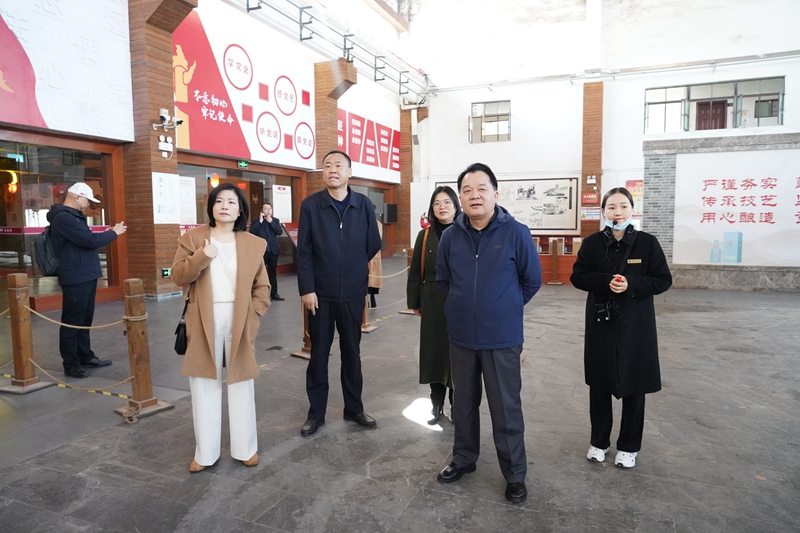 曾國平一行調研了天成坊釀造車間、辛氏酒館、名人酒窖、黃鶴樓酒文化博物館和黨建文化館,深入了解了黃鶴樓酒的釀造和儲酒工藝。
