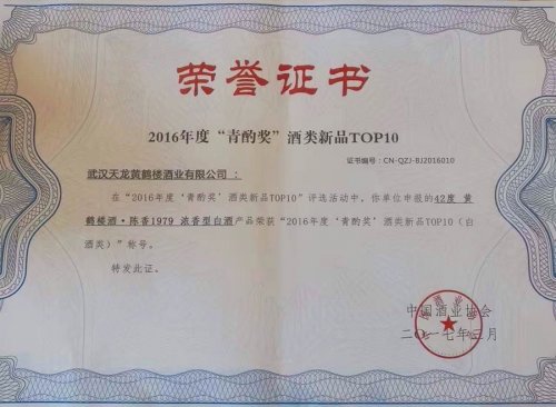 3月19日,在2017年中國國際酒業(yè)博覽會上,由中國酒業(yè)協(xié)會評定并頒發(fā)的2016年度酒類新品“青酌獎”正式揭曉,湖北中國名酒黃鶴樓酒戰(zhàn)略新品黃鶴樓酒?陳香,以更香、更柔、更順、更上層樓的中國名酒品質(zhì)風(fēng)范獲得中國酒業(yè)協(xié)會評委一致贊譽(yù),斬獲“青酌獎”。