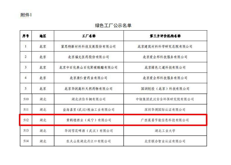 近日,工業和信息化部公示了2022年度國家綠色制造企業名單,黃鶴樓酒業(咸寧)有限公司榮膺工信部“綠色工廠”稱號。咸寧市僅有2家企業獲此稱號。