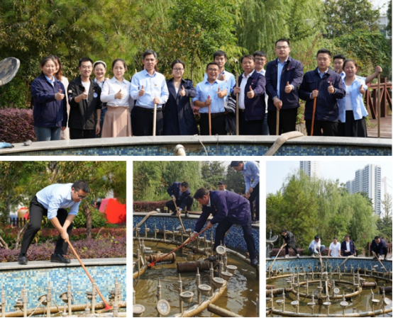 清掃活動現場,黨員同志們拿起長刷,團結協作、凝心聚力,清掃洗刷了洗噴泉池面、管道等地,充分發揚黨員先鋒模范作用。