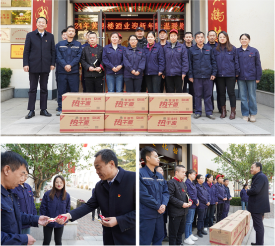 12月31日,元旦佳節來臨之際,黃鶴樓酒業黨委書記、董事長許鵬為公司勾儲、質檢與后勤等部門一線員工送去新年的溫暖與關懷。