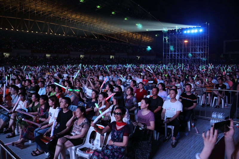 演唱會的現場表演火爆,觀眾熱情高漲。觀眾們揮舞著熒光棒與臺上的歌手們共同合唱,互動頻繁。比起現場觀眾的熱情,炎炎夏日已經不足道,用音樂解暑,黃鶴樓酒為黃岡市民送上了清涼一夜。