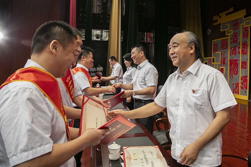 集團(tuán)黨委副書記、股份公司總經(jīng)理周慶伍宣讀《關(guān)于表彰2018年度古井集團(tuán)先進(jìn)黨組織、優(yōu)秀共產(chǎn)黨員、優(yōu)秀黨務(wù)工作者的決定》。大會共表彰2018年度“古井集團(tuán)先進(jìn)黨組織”14個(gè)、2018年度“古井集團(tuán)優(yōu)秀共產(chǎn)黨員”25名、2018年度“古井集團(tuán)優(yōu)秀黨務(wù)工作者”16名。與會領(lǐng)導(dǎo)為獲獎單位和個(gè)人頒獎。
