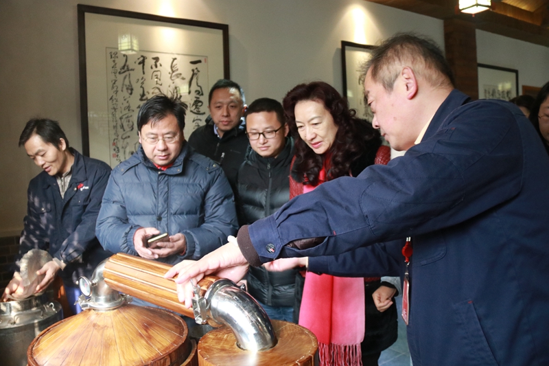鄭慧麗一行參觀了天成坊釀造車間、名人酒窖、酒文化博物館、黨建文化館等地,詳細(xì)了解了黃鶴樓酒業(yè)的發(fā)展歷程與經(jīng)營現(xiàn)狀。張瑞介紹到,黃鶴樓酒業(yè)武漢廠區(qū)占地百余畝,是集吃、住、游、娛、購于一體的AAA級旅游景區(qū),他表示,黃鶴樓酒業(yè)“一樓三香”的產(chǎn)品體系與“一核兩翼”的市場格局,為黃鶴樓酒面向全國、走向世界奠定基礎(chǔ)。企業(yè)以黨建促發(fā)展,堅(jiān)定政治站位與紅色引領(lǐng),通過全方位的建設(shè),打造成更具現(xiàn)代化的白酒企業(yè)。